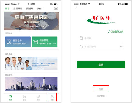 打开好医生官网APP,点击APP首页下方“我的”进行登录,没有好医生用户名的请先注册